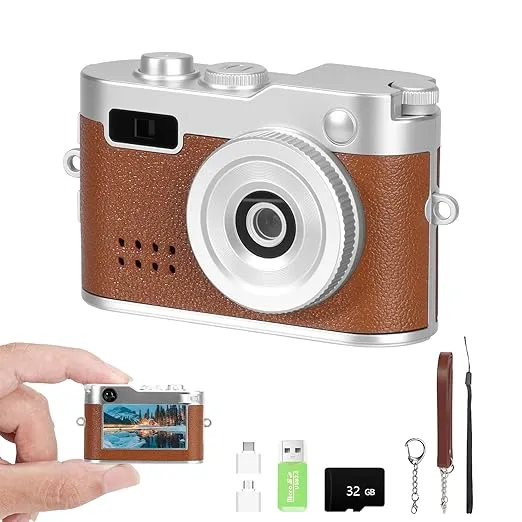 Mini Keychain Camera, FHD 1080p Mini Digital Camera with SD Card, Flash,Six Filters, OTG Adapters, Card Readers, 100 Mins Battery Retro Small Camera
